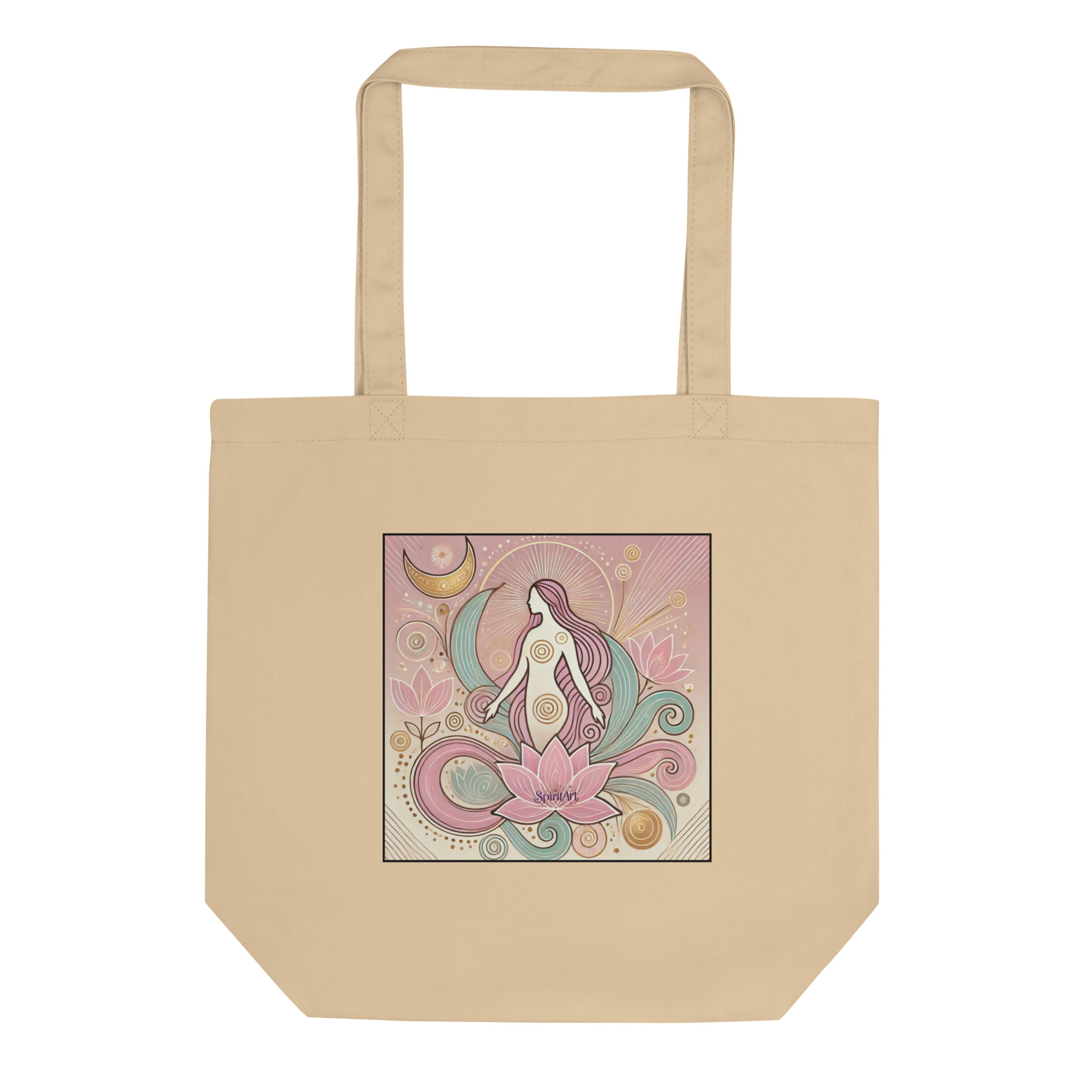 Description: “A serene and powerful design symbolizing the Divine Feminine and fertility. Featuring a graceful goddess figure surrounded by lotus flowers, crescent moons, and spirals, this artwork evokes growth, spirituality, and inner harmony. Perfect for bringing a touch of feminine energy to your daily life.