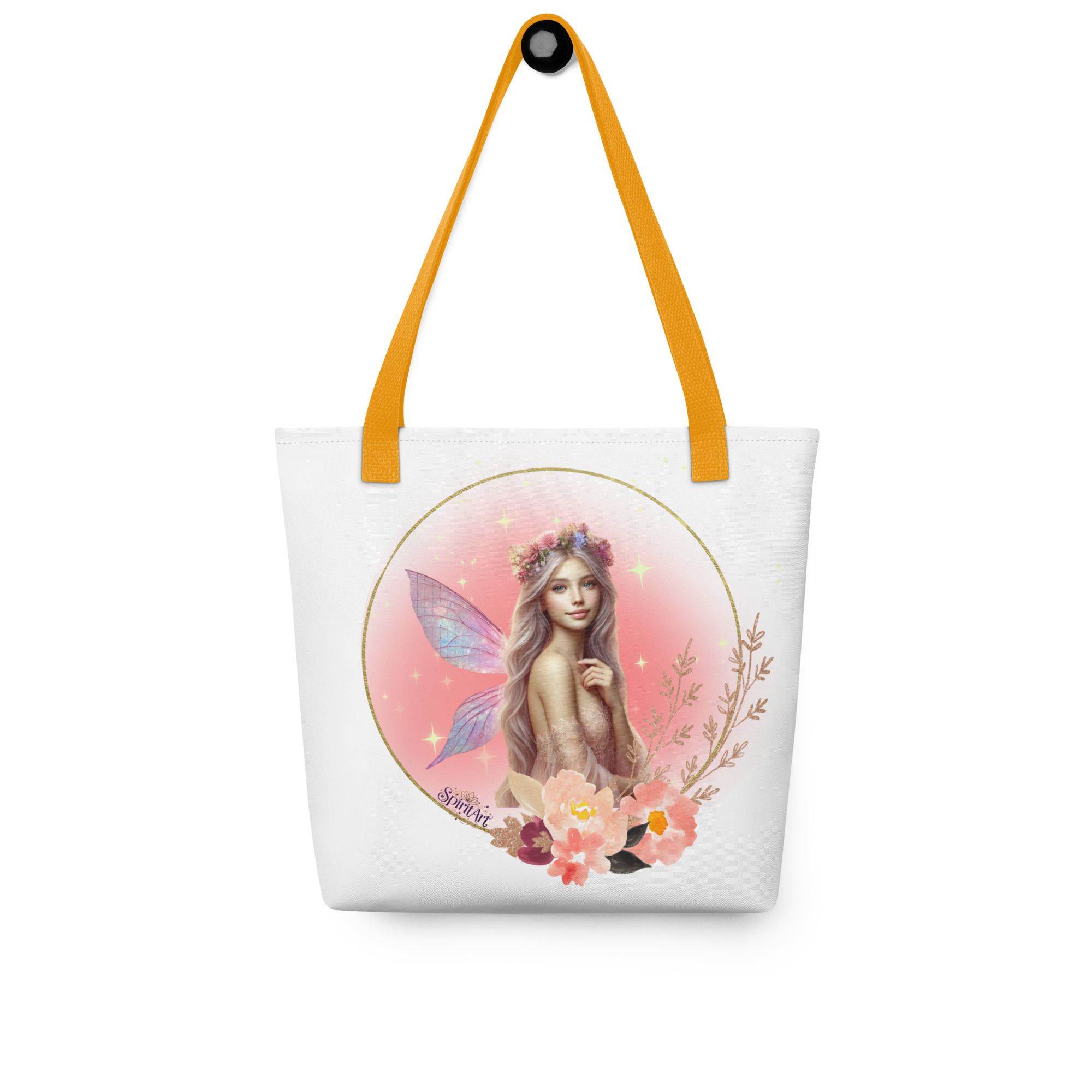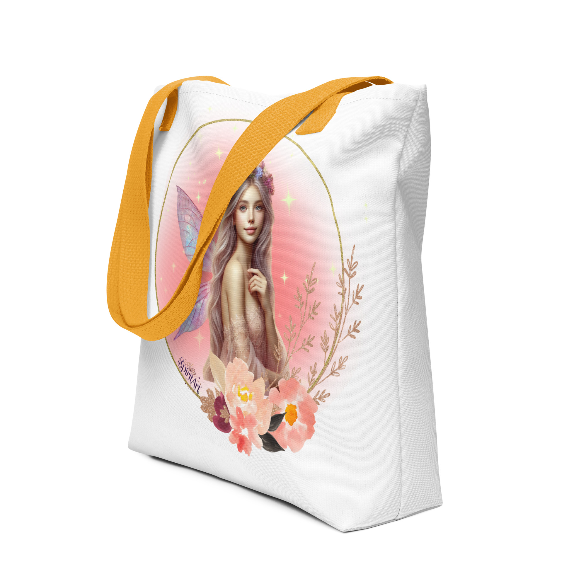 Add a touch of enchantment to your day with this beautifully designed tote bag featuring the “Fairy Blossom” artwork. This captivating image showcases a delicate fairy surrounded by blooming flowers, radiating elegance and magical charm. The vibrant colors and intricate details create a perfect blend of beauty and functionality.