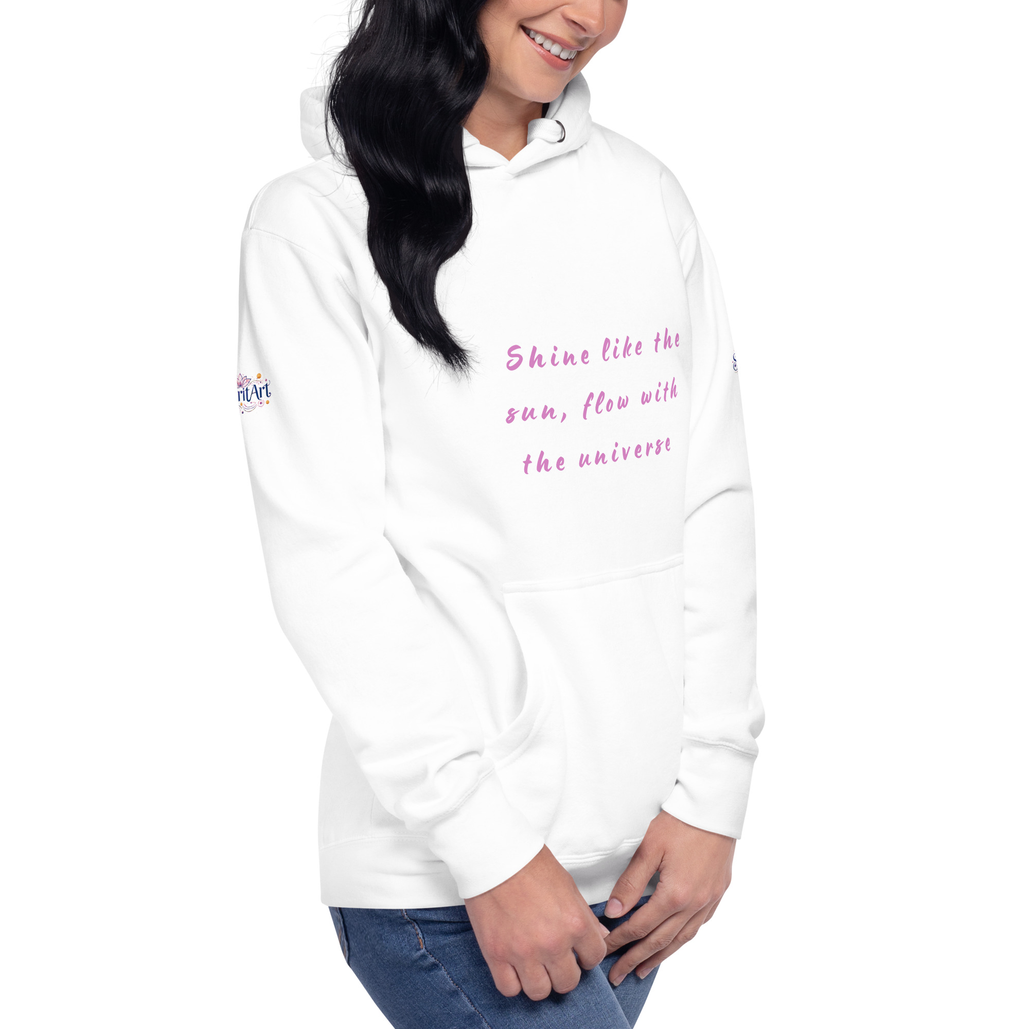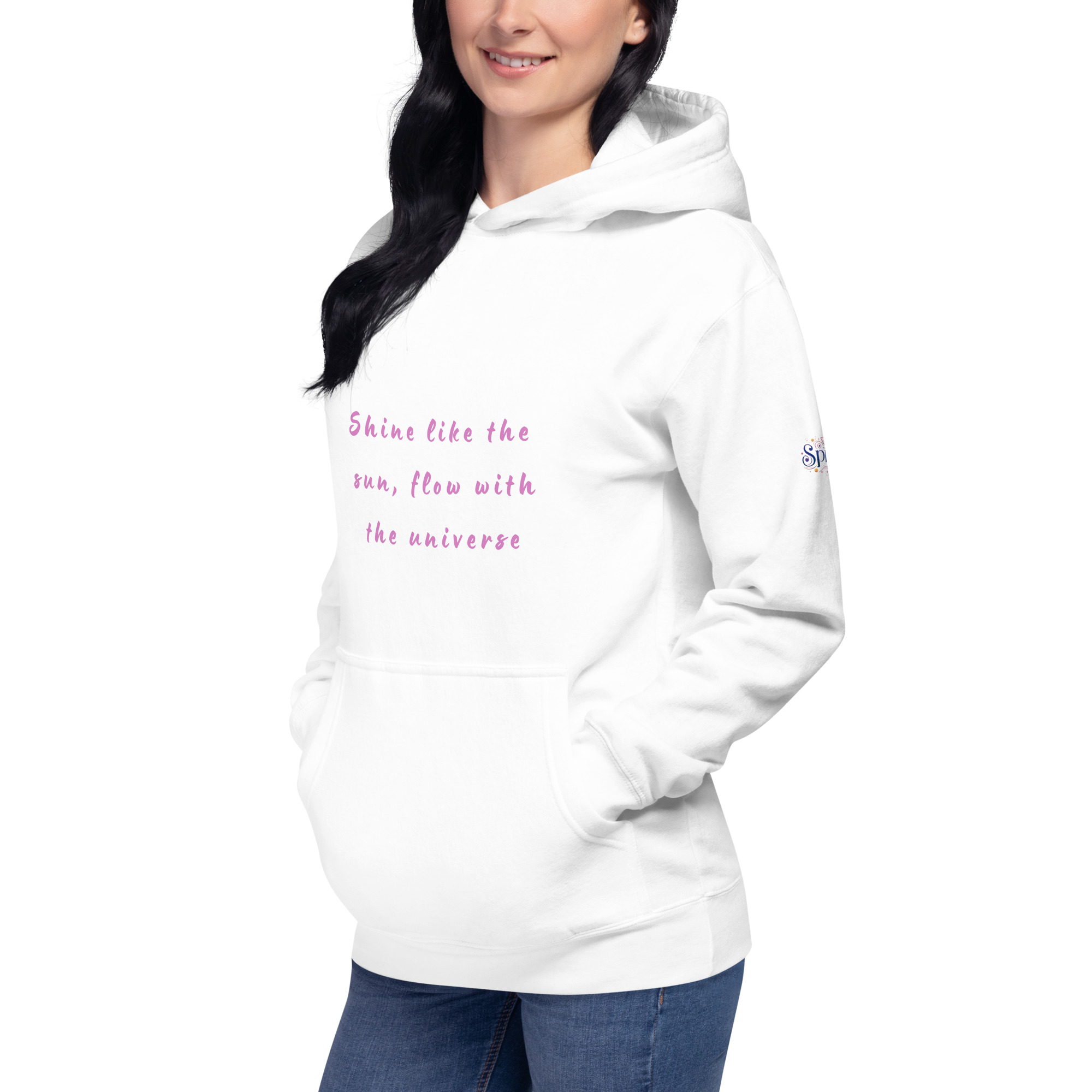 An inspiring Sweatshirt to s positive energy. Featuring a unique design with a radiant sun and delicate geometric symbols, this Sweatshirt reminds you: “Shine like the Sun, Flow with the Universe.” Perfect for spirituality lovers and a wonderful gift for anyone looking to connect with flowing, calming energy